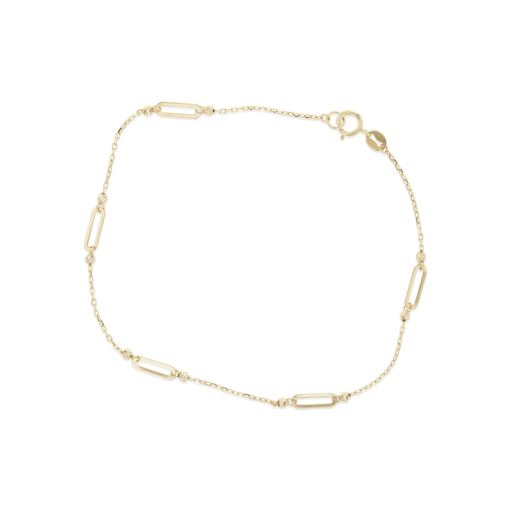 9Y FINE CABLE CHAIN WITH ALTERNATING PIECES 2CM APARROTT. PAPERCLIP OVAL & DIAM CUT BALL FEATURES. PAPERCLIP PIECE MEASURES 9MM LONG. BALLS MEASURES 2MM. PARROT CLASP. 19CM LENGTH.